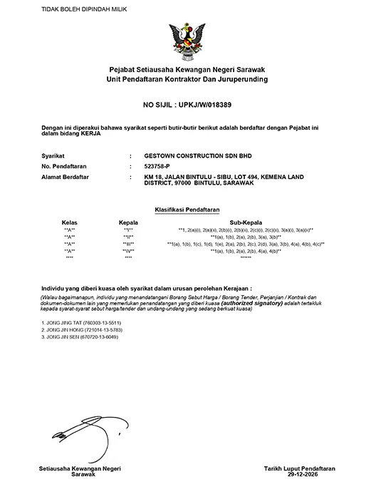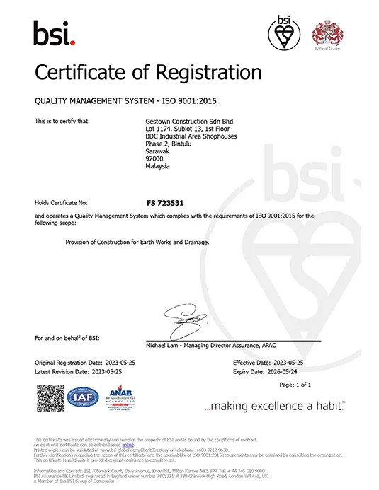 Welcome to Gestown Construction Sdn Bhd, a leading force in the civil construction industry, dedicated to delivering excellence since our inception on August 16, 2000. We began our journey as a contractor for civil construction works, specializing in oil and gas projects. Over the years, our commitment to quality and innovation has propelled us to successfully complete various significant projects.